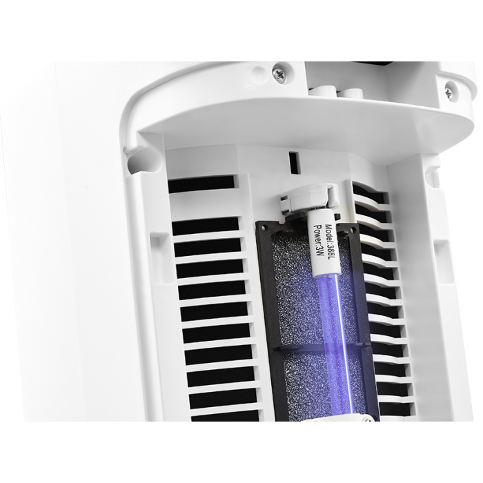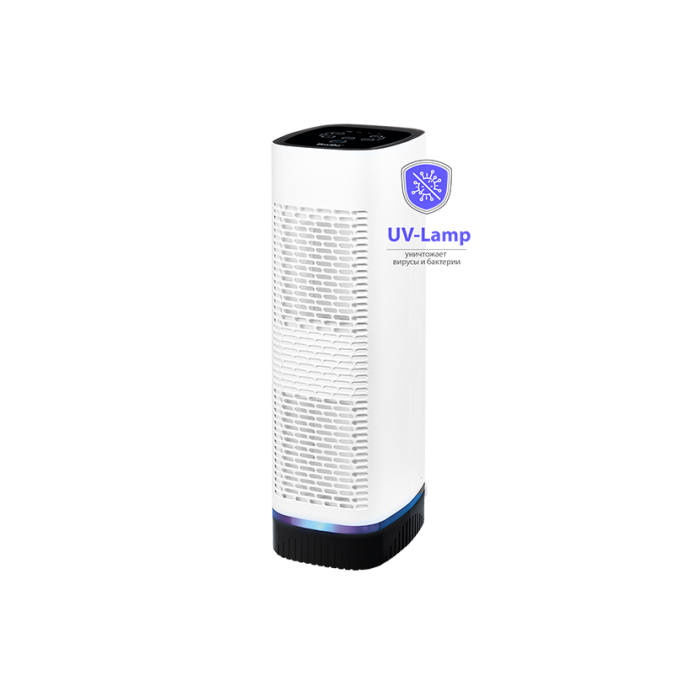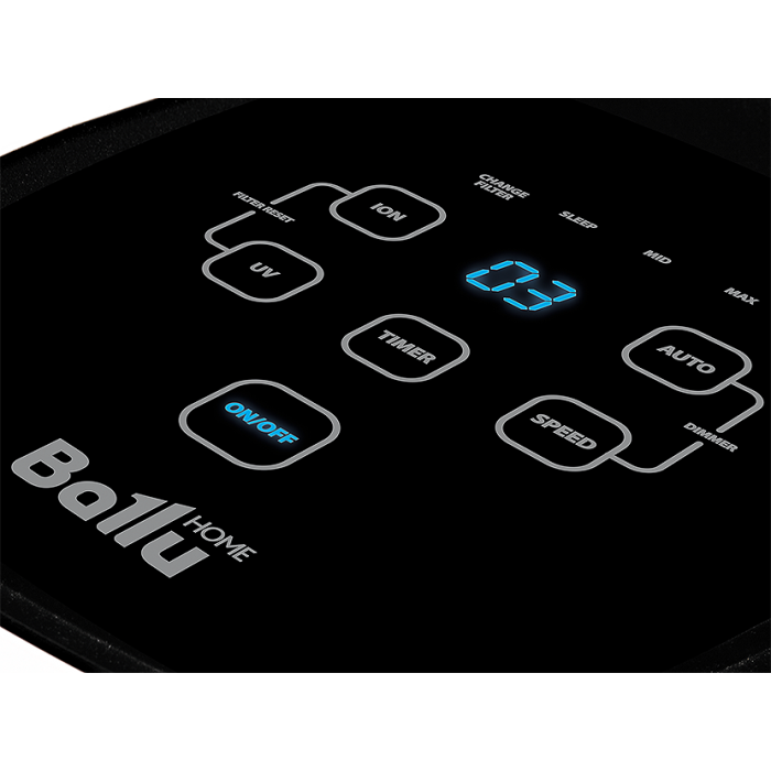 Обеззараживание Полноразмерная УФ-лампа 3 Вт, встроенная в очиститель-обеззараживатель воздуха Ballu AP-110, совместно с Фотокаталитическим фильтром, уничтожает вирусы, микроорганизмы и другие виды патогенной органики: грибки, плесень и споры. ION – ионизация В Ballu AP-110 встроен отключаемый ионизатор для улучшения качества воздуха и насыщения отрицательными аэроионами. Датчик качества воздуха PM2.5 В прибор встроен датчик качества воздуха мелкодисперсных частиц PM2.5, который сканирует воздушное пространство в помещении и определяет количество опасных в нем веществ. Air Purity – цветовая индикация качества воздуха Цветовая индикация информирует вас о степени загрязненности воздуха в помещении, благодаря чему вы можете без проблем назначить необходимую скорость вращения вентилятора, либо переключить прибор в автоматический режим, и он сам выберет необходимую скорость очистки. Таймер 24 часа и Таймер замены фильтров